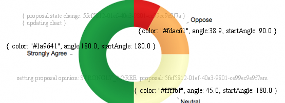 The consensus chart is a D3js chart library, which enables flexible charting options and smooth animation of changes. D3 will also be appearing on the APNIC website as the charting library behind APNIC statistics, and on the Labs website as part of the Labs suite of visualizations. For developers, the doughnut chart is available as a re-usable component in almost the same form it appears in CONFER.