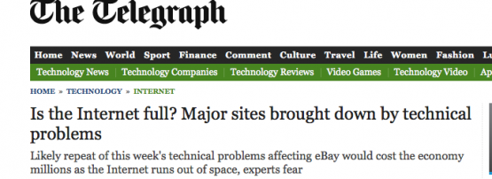 The story I like best about the Internet’s imminent collapse is Bob Metcalfe’s prediction back in 1995, and NANOG’s T-shirt in response (see the NANOG 08 T-shirt at http://www.nanog.org/meetings/t-shirts if you want to re-live the moment!)