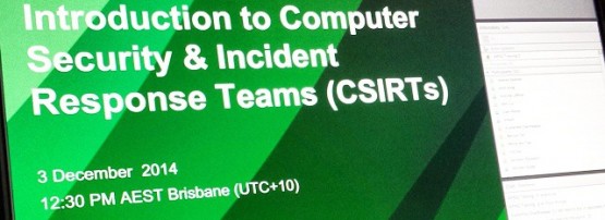 APNIC recently added a new e-learning course, eSEC05: Introduction to Computer Security Incident Response Teams (CSIRTs). It was offered for the first time on the 3rd of December 2014 and the exciting bit about this was it was my first time doing an E-Learning session for APNIC!