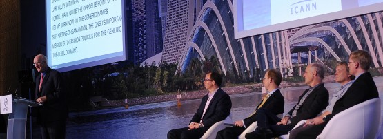 Paul WIlson presenting at the ICANN Opening Ceremony. Image courtesy ICANN.