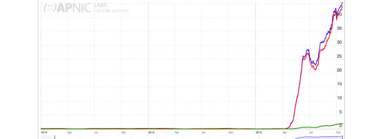 The answer isn’t just “they’re doing IPv6” (or that they are all great examples of IPv6 deployment in the Asia Pacific – well done!), it’s that they’re around the 5th or 9th, 10th or even 16th by size in our sample count in their economy, but are single-handedly responsible for the up-take we see in the economy in question.