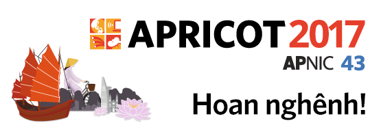 We are very pleased to welcome you to APRICOT 2017, held for the first time in Ho Chi Minh City, Viet Nam. We extend our thanks to the hosts — Vietnamese Network Information Center (VNNIC), Vietnam Internet Association (VIA) and Netn@m — and sponsors for their support of the event.