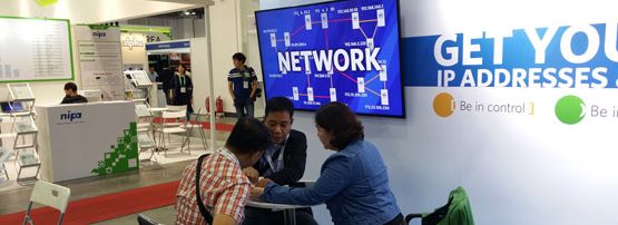 - Anna Mulingbayan, Tom Do, and Blandine Cousin hosted a booth and welcomed a number of current and potential Members to help them with their membership and IP address queries.