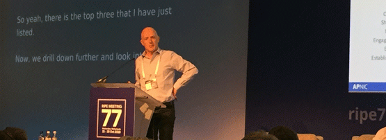 - At RIPE 77, Paul Wilson presented on the key findings of the 2018 APNIC Survey at the RIR session. Read more about the 2018 APNIC Survey findings. Paul also presented the NRO update as Chair of the NRO EC.