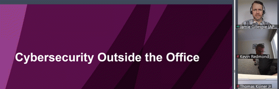 - Jamie Gillespie gave a presentation on ‘Cybersecurity outside the office’ on the changes to traditional cybersecurity, the challenges around technology, and the less-discussed threats around the people and processes, and how those need to adapt as well.