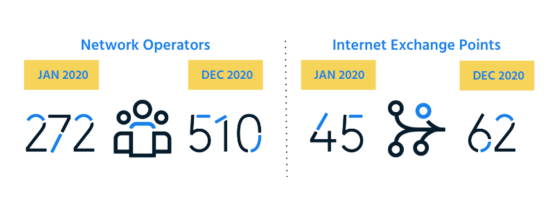 2020 saw impressive growth in MANRS participation, meaning more people are now aware of the problems insecure routing can create if not addressed properly. Through the hundreds of community engagement and capacity-building initiatives, MANRS helped inspire many people to adopt RPKI and other technologies that can strengthen overall routing security, one network at a time.
