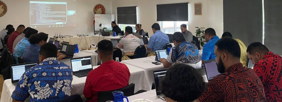 APNIC trainers delivered the course remotely, due to COVID travel restrictions. However, students were still able to get together in one room. The course was designed in a new hybrid format, with some of the 27 participants able to interact and work together in person, while others participated remotely. This was made possible thanks to support from Tonga’s Ministry of Meteorology, Energy, Information, Disaster Management, Environment, Climate Change and Communication (MEIDECC), Tonga CERT, Digicel and House of Tonga.
