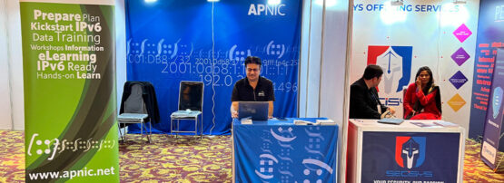 - Pubudu Jayasinghe and APNIC Community Trainer, Azhar Khuwaja, hosted a booth and welcomed several APNIC Members, prospective Members, and government officials, answering their questions on membership and getting IPv4 address space, IPv6 deployment and RPKI.