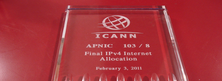 On 3 February 2011, ICANN/IANA allocated the 103/8 IPv4 block to APNIC, with delegations starting from this final /8 on 18 April. Each APNIC account holder could receive up to a /22 from 103/8 according to the final /8 policy.