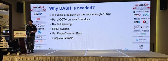 - Zen Ng presented on DASH where he showcased some of the tool’s features including how to generate reports and alerts on routing status, suspicious traffic and MANRS readiness.