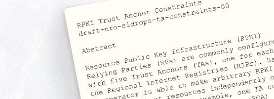 As part of the NRO RPKI Program, representatives of the five RIRs have been working on a draft specification to address these concerns. The specification ‘RPKI Trust Anchor Constraints’ has now been posted to the SIDR Operations Working Group (sidrops WG) in the IETF and will be discussed during the sidrops WG session on 3 November 2025 in Montreal.