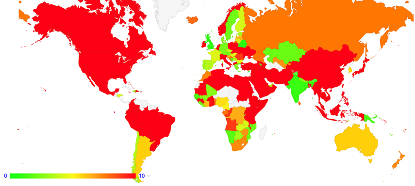 We test IPv6 fragmentation behaviour as part of the IPv6 measurement set, and a map of IPv6 fragmentation drop rates on an economy basis is generated daily. The current map is shown in Figure 4.