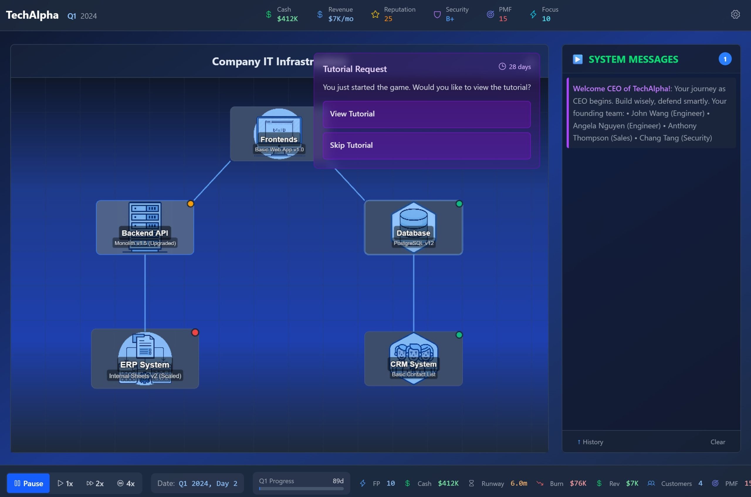 CISO Challenge is a real-time simulation where you play as the CEO of a growing company. You have a product, a sales team, and product-market fit. You need to acquire customers and improve your offering to go after larger deals. But as you become more successful, you become a more compelling target.