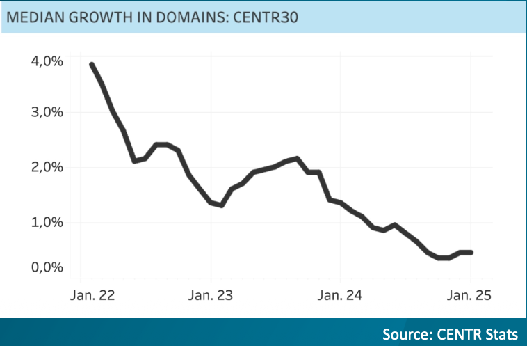 The domain industry is facing a challenge we don’t talk about enough. According to CENTR statistics, median domain growth among CENTR30 registries has dropped from around 4% in early 2022 to barely above zero by early 2025. But the real story isn’t just in these declining numbers — it’s in the cause of the decline. The outflow of domains being deleted is driving the numbers, rather than the inflow of new registrations.