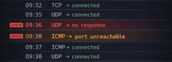 - Connection attempts that receive no response (for example, when the destination host is offline, firewalled, or does not exist).