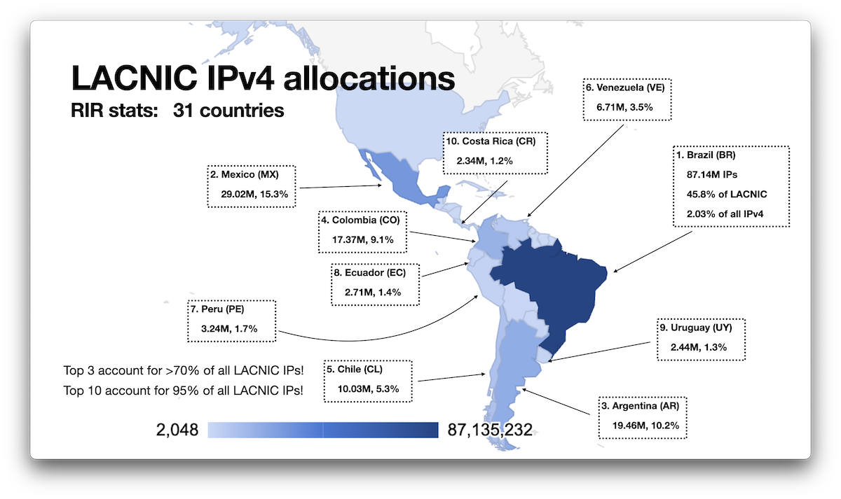 fig13-ipcount-lacnic ← Previous Next → Figure 13 — LACNIC IPv4 count by economy. Click the image for an interactive map.